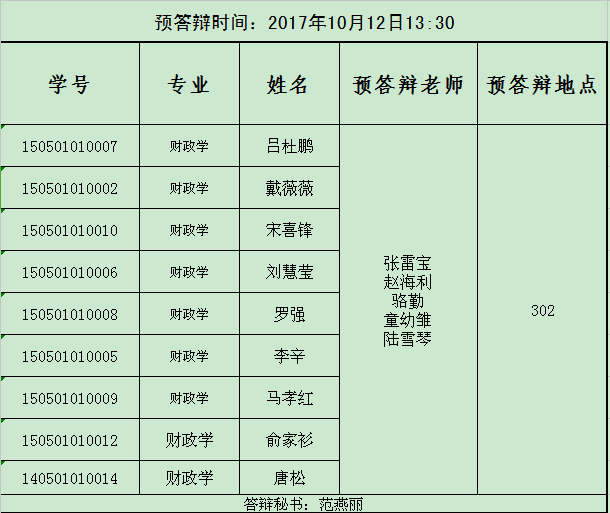 经决定,2015级研究生论文预答辩将于2017年10月举行。现将有关事项通知如下,请相互通知: