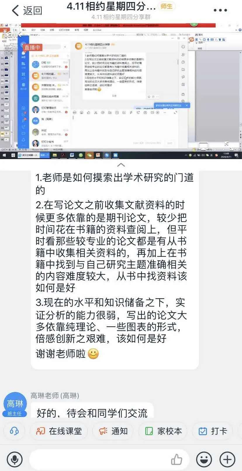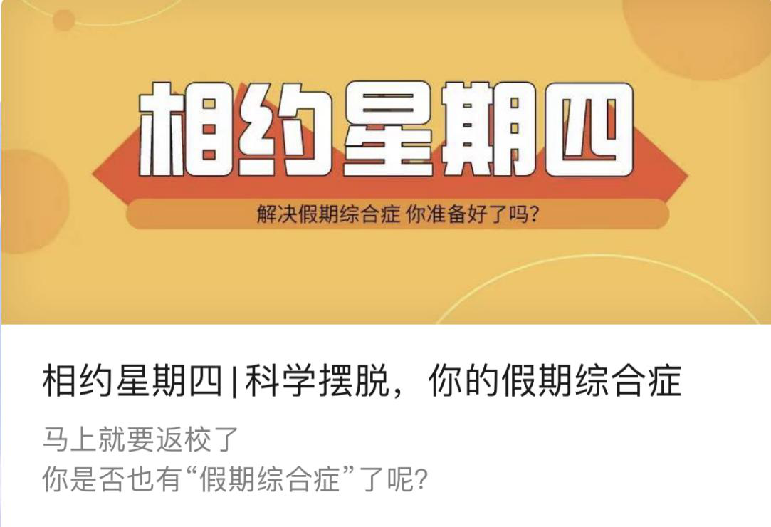 4月份以来,每个双周,学院组织党员教师通过“相约星期四”活动,针对疫情期间学生关注的心理健康、复学准备、返校适应等问题开展在线分享,为学生有序返校复学传道解惑,聚力织密师生沟通“信息网”。