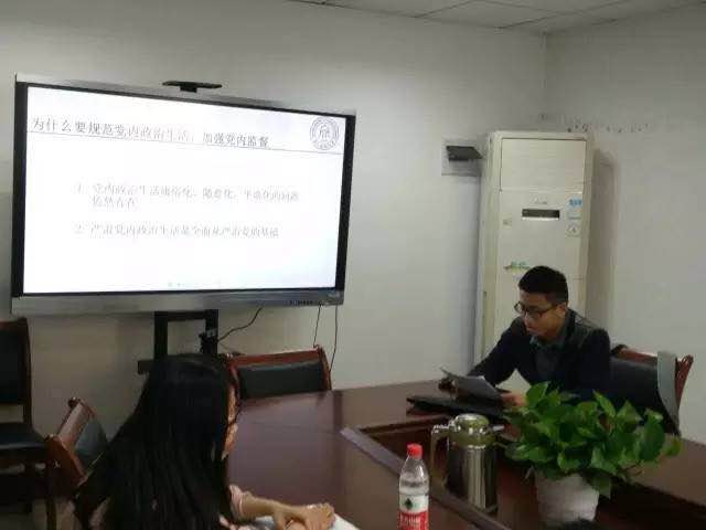 范羿瑾同学围绕“规范党内政治生活、加强党内监督”这一主题展开。他强调,党员不抓,一盘散沙。全面从严治党必须落实到每一个支部和党员。把“两学一做”学习教育开展到每个支部,就是让从严治党的精神真正灌输到党组织的每一个党员中来,把每个党员锻造成党组织在基层的“螺丝钉”,以实际行动体现党的先进性,以自我要求巩固党的纯洁性。按照党中央部署精心组织开展“两学一做”学习教育。