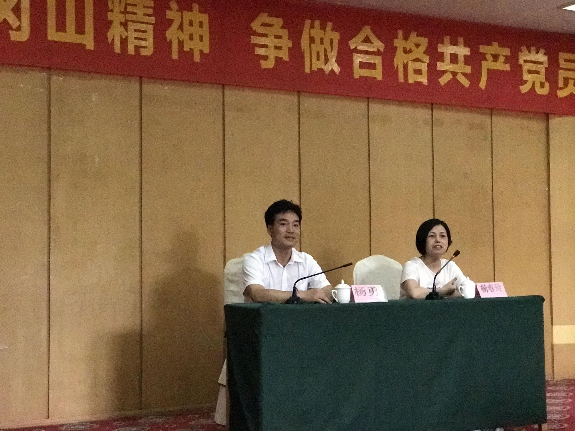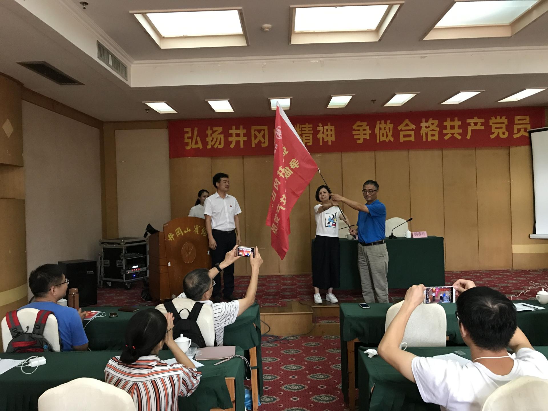 培训班开班仪式在庄严的国歌声中开始。井冈山优良传统干部培训中心主任杨勇致辞,学院党委书记杨春玲向学员代表王绪强授旗并讲话。她说,学院党委高度重视对教师党员的学习和培训工作,前期与井冈山优良传统干部培训中心反复磋商,认真准备,精心设计了这次的学习培训内容。她强调,本次培训是学院“两学一做”常态化活动的重要内容,也是教工支部“主题党日”的重要形式,希望各位学员珍惜这次难得的学习机会,充分感悟井冈山精神,切实履行好每一名党员教师自身肩负的职责,使这次培训学习之旅成为精神补钙之旅、心灵升华之旅和工作加油之旅,为建设一流的高水平学院作出更大的贡献。