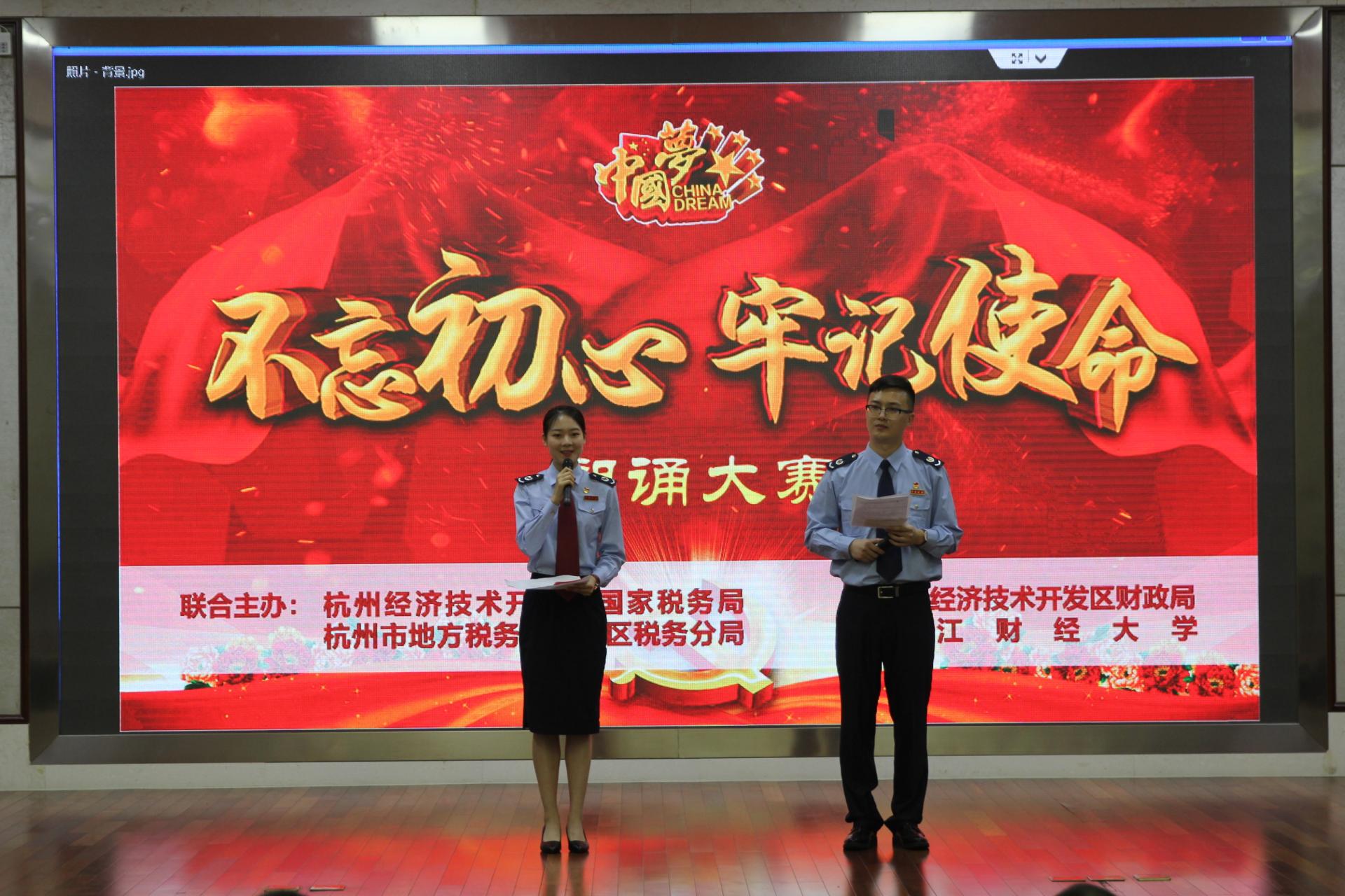 为深入推进“两学一做”、党风廉政学习教育常态化制度化,学习宣传贯彻党的十九大精神,进一步推进支部建设,5月23日,起点中文网 与杭州经济技术开发区国家税务局、杭州经济技术开发区财政局、杭州市地方税务局开发区税务分局联合举办了主题为“不忘初心·牢记使命”的党日活动,活动以诗歌朗诵的形式进行。区局领导班子成员、全系统干部职工、起点中文网 师生代表观摩了比赛。