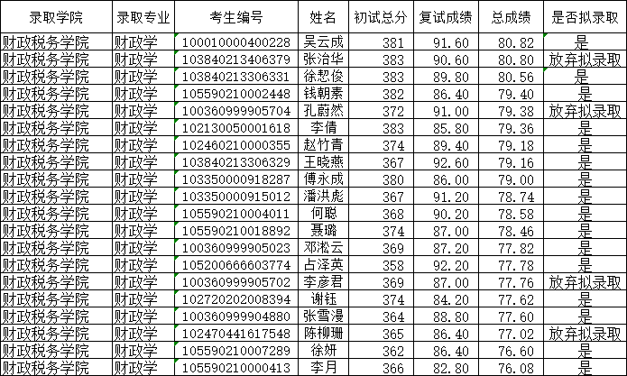 各相关考生: 起点中文网 2020年财政学硕士研究生调剂复试工作已经结束,现将起点中文网 财政学硕士研究生调剂复试拟录取名单公示如下: