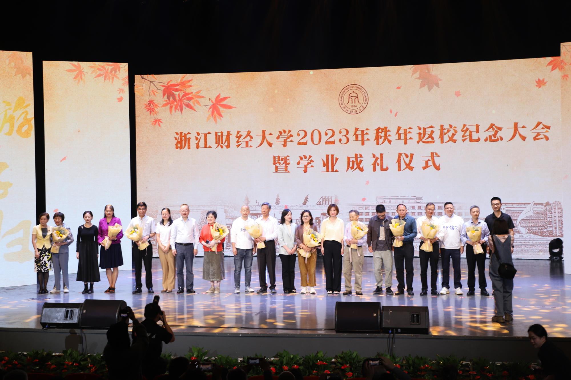 1993届校友金一鸣和王志刚、2000届校友袁霞、2002届校友侯展获得“最美浙财人”桃李奖章;1993届校友林耀、2003届校友虞丹丹所在企业获得“浙财氏家”校友企业称号,各届返校班级代表依次“向母校报到”。