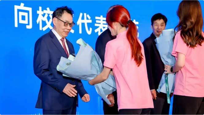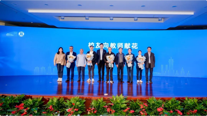 学院院长付文林致辞,对50年发展历程中为学院建设做出贡献的教师、校友和社会各界表达了诚挚的感谢。庆典现场,校友代表和在校生代表为邵鸿烈、黄力寅、刘炳杰、沈玉平、骆勤、王绪强、龚刚敏、王序坤、吴利群、司言武、张雷宝等11位曾经在学院教学一线辛勤耕耘的教师,胡少先、马旭明、毛⽔芳、徐育雄、夏月龙、王国海、应飞虎、陈桂雷等8位荣获重要荣誉表彰的校友献上致敬的鲜花。在彼此的问候、祝福与勉励中,师生情谊深深相连,财税精神接力相传。