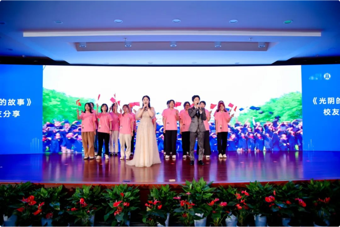 魏江、钟晓敏、赵立妙、胡关夫、许祖原、王黎明、蒋学武、陈伟军、边宏庆,章启诚、黄志明、袁⼩强、李宇等13位校领导、校友代表及合作单位代表共同启动了“光阴的故事”环节,8位校友代表深情讲述自己的光阴故事。他们中,有恢复高考后进入浙财,铭记终身学习道理的79届校友凌丽娅;有将所学税收知识和工作实践结合,投身地方“三农”工作36年的88届校友戴根林;有扎根税务基层,多地多岗历练,终获佳绩的91届校友林晖;有毕业返回家乡基层,担当作为的好干部95届校友卢小珍;有抓住机遇,辗转新能源、数字化多个领域,永葆创业探索精神的03届校友沈沈壹;有积极投身援疆工作,为边疆的繁荣稳定贡献青春力量的07届校友吴双;有在优良师⻛影响下热爱学术研究,追寻学术梦想的10届研究生校友高琳;还有长期参与公益活动,不断探索税务师职业真谛的11届校友余纯洁。这些优秀的财税⼈,带着学院“厚德博学笃行济世”的精神烙印,在各行各业中奋楫扬帆、破浪笃行,成为经济管理领域和国家治理的栋梁之才。