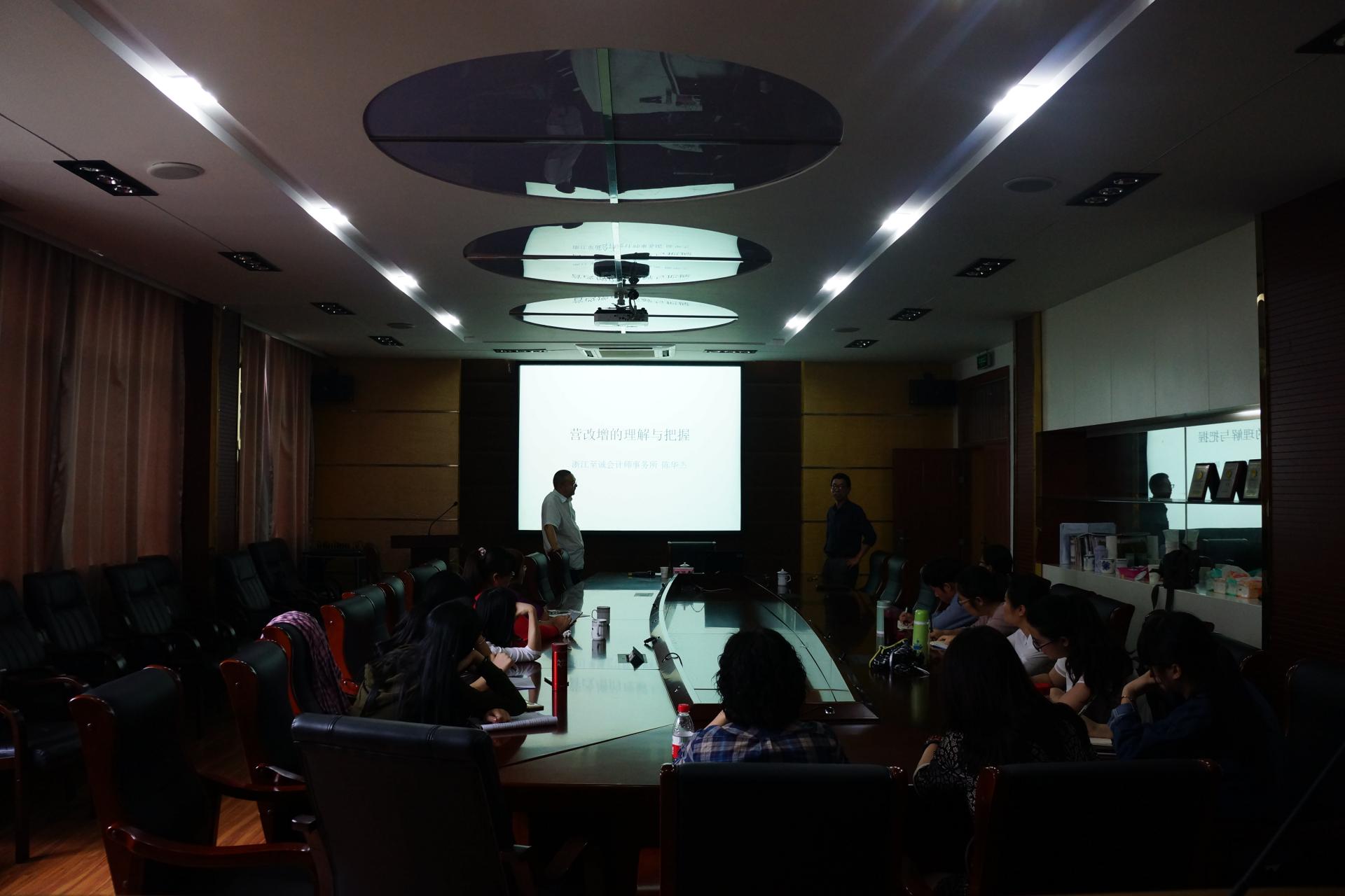 6月2日下午,财政与税务学院在1号楼305举行了主题为“营改增的理解与把握”的专题讲座,讲座邀请了学院优秀的校外导师,浙江至诚会计师事务所董事长、主任会计师陈华杰老师主讲,财政与税务学院的部分研究生及老师参加了此次的讲座。