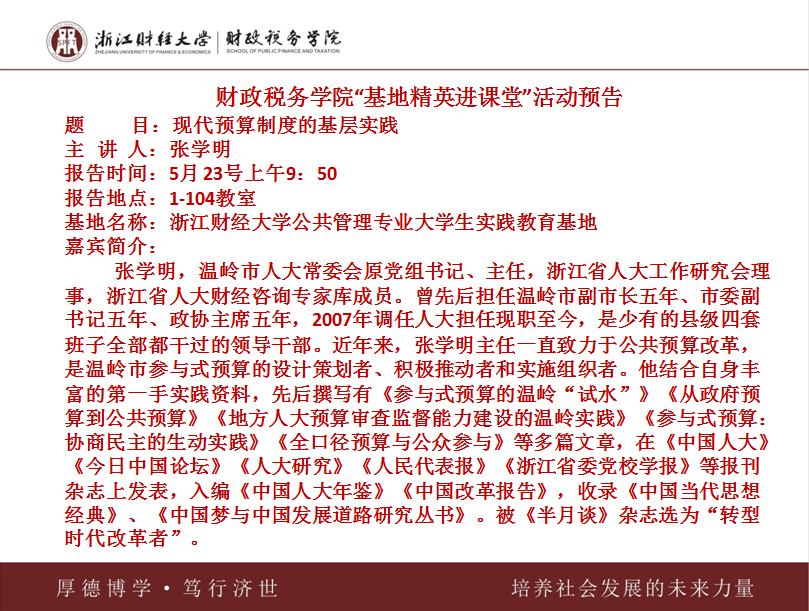 起点中文网 “基地精英进课堂”活动预告:现代预算制度的基层实践