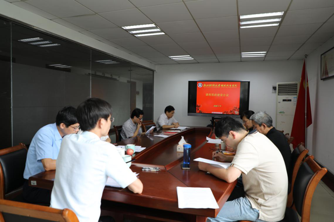 在1号学院楼418会议室召开课程思政建设会。学院领导、系主任、督导组成员和学院教学办参加了会议。会议由教学副院长童光辉老师主持。