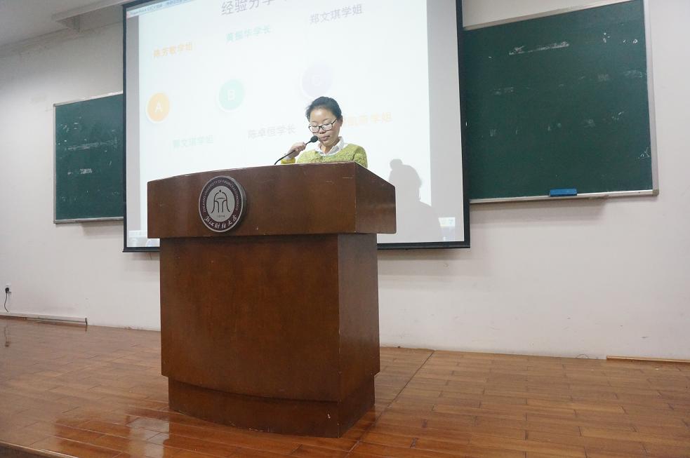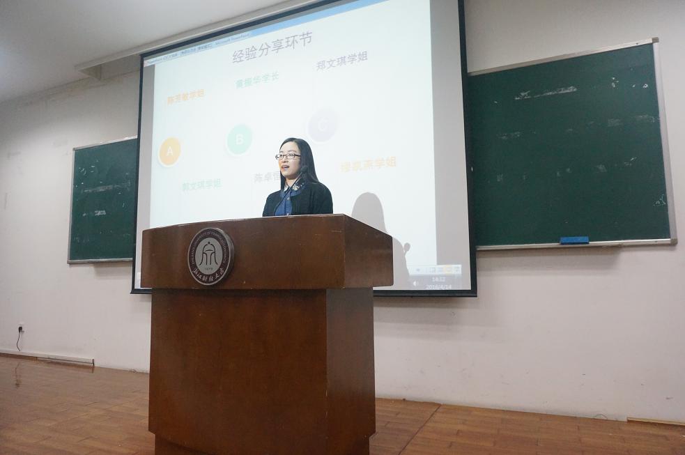 学科硕士的陈芳敏、考取上海财经大学的黄振华和郑文琪、考取复旦大学的郭文琪和缪凯燕,还有被中国社会科学院研究生院录取的陈卓恒与大家分享自己的考研心得,传授考研经验。学院有志于考研的100余名大三学生参加了会议。