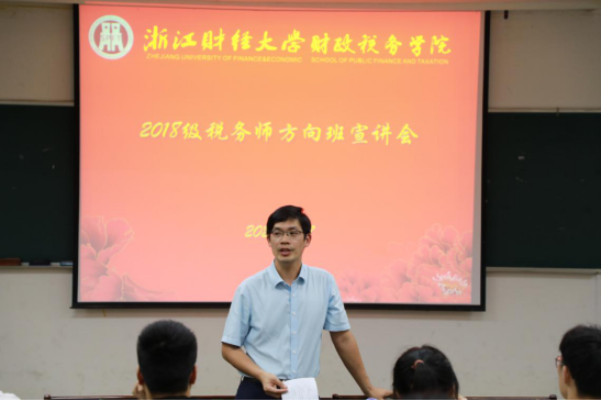 童光辉老师从税务师班组成原因、税务师班培养方向、税务师班课程构成三个角度介绍了税务师班的具体情况。童老师强调“税务师方向班”将着重强化税收实务及相关专业知识和实务操作能力的学习,培养日后有志于从事涉税服务及相关工作的应用型人才。