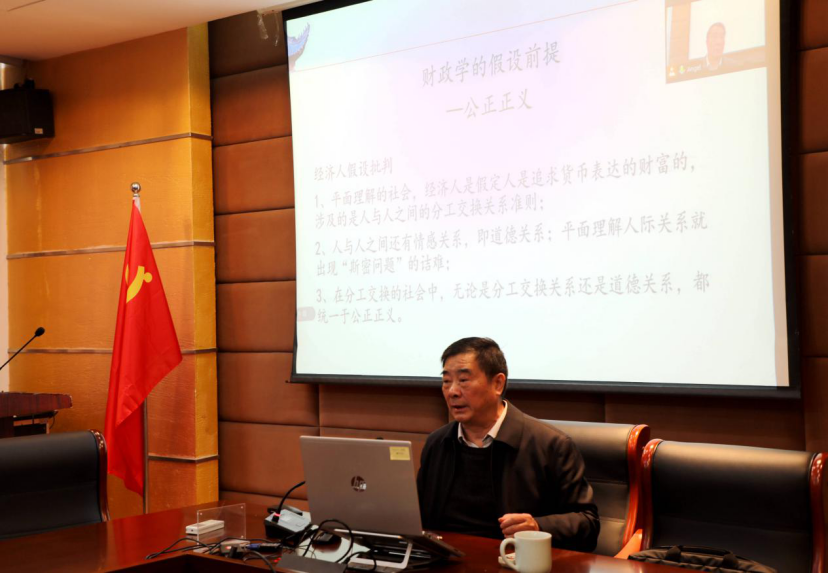 本次讲座中,吴俊培教授系统阐述了财政学的三个基本问题:财政学的假设前提、分析方法以及基本研究单位。关于财政学的假设前提,他从亚当斯密的《国富论》、《道德情操论》两本经典著作说起,引出在分工交换结构中人与人之间存在两种最基本的关系:情感关系和价值关系。他认为在情感交换关系和分工交换关系之上,还有公正正义的法律机制,公正正义才是财政学的假设前提,而非经济人集合。