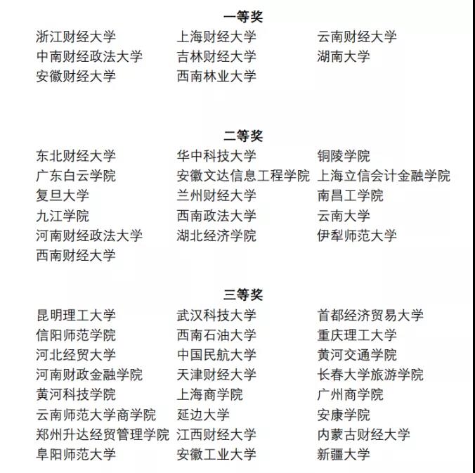 、上海财经大学、云南财经大学、中南财经政法大学、吉林财经大学、湖南大学、安徽财经大学、西南林业大学等8所高校摘得一等奖;东北财经大学等16所高校获得二等奖,另有24所高校获得三等奖。同时,以上获奖队伍的参赛选手们还获得了由浙江省注册税务师协会组织的34家税务师事务所发放的免试入职资格。
