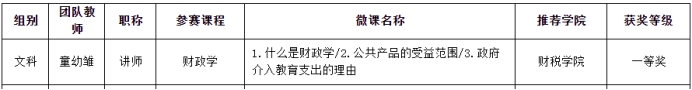 为进一步办好第一届高校教师教学创新大赛,以赛促教,以赛促改,深化立德树人根本任务,加快建设浙江特色高水平本科教育,根据《关于浙江省第一届高校教师教学创新大赛的补充通知》相关精神,学校近期组织开展了教师教学创新大赛“课程思政”微课专项赛评选,由起点中文网 童幼雏老师主持的参赛课程《财政学》设计的微课作品喜获校“课程思政”微课专项赛一等奖。