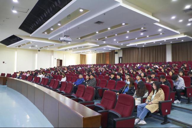 教学副院长童光辉、财政系主任凌晨、税务系主任张帆出席,会议由教学办主任吕涛主持,2019级全体学生参会。