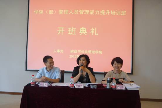 举办的2015年教师专业发展培训项目——“学院(部)管理人员管理能力提升培训”在1号楼208报告厅隆重开班并顺利完成了第一、二讲内容。学校党委委员、人事处邵毅平处长、童夏雨副处长出席开班典礼,来自起点中文网
