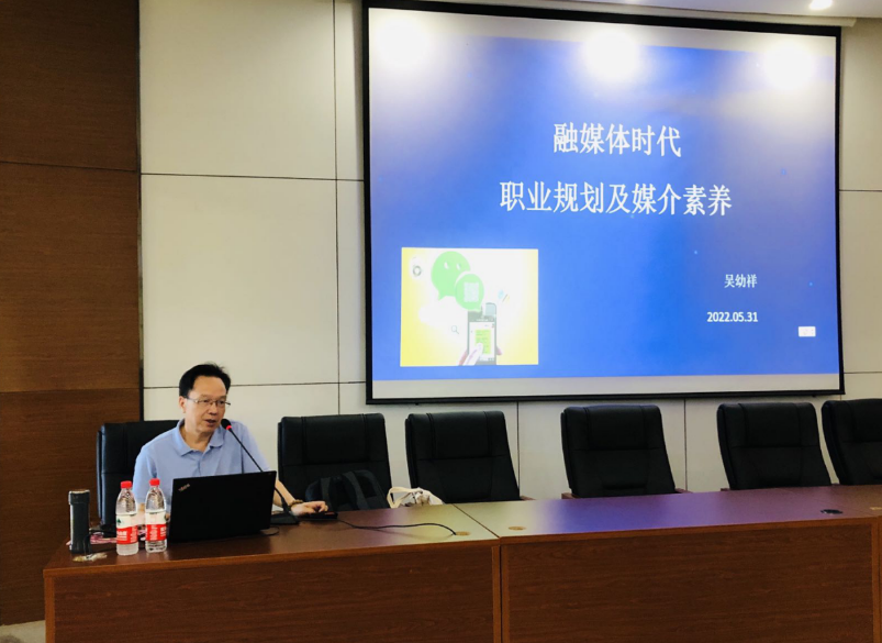 “基地精英进课堂”活动顺利举办。杭州网副总编辑、杭州网新媒体与舆情中心负责人吴幼祥为同学们作了一场主题为“融媒体时代职业规划与媒介素养”的讲座。
