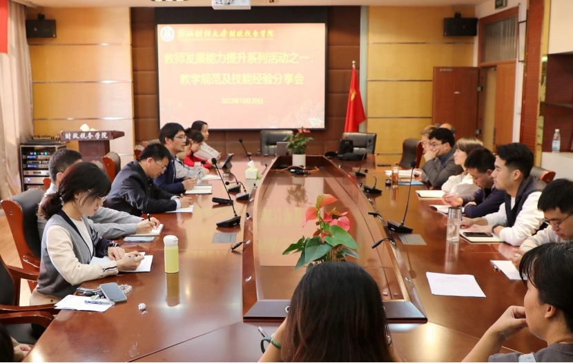 举行以教学规范及技能经验分享为主题的教师发展能力提升活动。院长司言武,教学副院长张帆,学院教学督导组组长骆勤出席活动。学院考核期内的青年教师等近30余人参加了本次活动,活动还吸引了会计学院、数据科学学院、马克思主义学院等兄弟学院的青年教师参加。本次活动由教学副院长张帆主持。