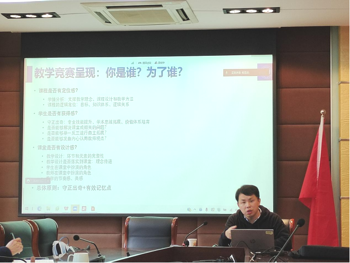 邀请全国高校青年教师教学竞赛(文科组)一等奖获得者、浙江工商大学金融学院邓弋威副教授作了主题为青年教师教学竞赛经验分享的教师发展能力提升活动。学院考核期内的青年教师参加了本次活动,活动还吸引了会计学院、数据科学学院、法学院等兄弟学院的青年教师参加。本次活动由教学副院长张帆主持。