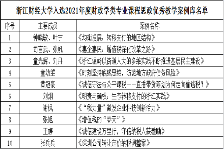 的建校专业。团队自成立以来,始终坚持社会主义办学方向,以习近平总书记提出的“四有”好老师为标准,以黄大年同志“心有大我,至诚报国”的精神为榜样,潜心教书育人,勇攀学术高峰,倾情服务国家和地方经济社会发展,为社会培养了大批兼具家国情怀和财经素养的财税人才,为学校赢得了“浙江财税干部的黄埔军校”美誉。