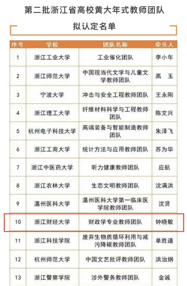 “财政学专业教师团队”荣获第二批浙江省高校黄大年式教师团队。