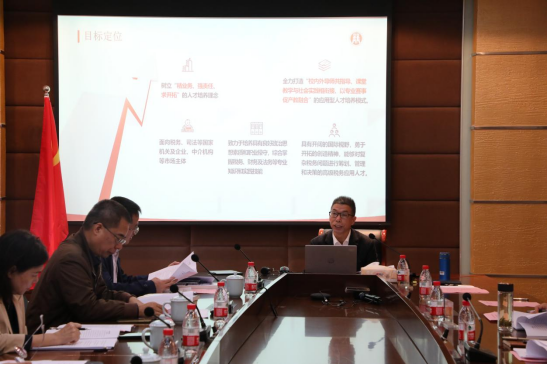 税务硕士负责人董根泰向专家组汇报了学位点在评估期的建设情况,他从培养目标与标准、基本条件、人才培养、服务贡献等四个方面,详细介绍了学位点在评估期的发展举措与成效,并客观分析了学位点建设尚存在的不足与面临的挑战。