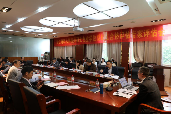 召开税务硕士专业学位授权点合格评估专家评估会。本次专家评估会由全国税务专业学位研究生教指委秘书长、厦门大学经济学院童锦治教授担任专家组组长,专家组成员包括全国税务专业学位研究生教指委委员、上海财经大学公共经济与管理学院朱为群教授,杭州电子科技大学会计学院潘亚岚教授,中汇(浙江)税务师事务所有限公司董事长、浙江省注册税务师协会副会长袁小强,国家税务总局绍兴市柯桥区税务局包关云高级会计师。学院院长、副院长、税务硕士项目负责人、学位点骨干教师、研究生辅导员、科研秘书、研究生秘书及学生代表参加本次评估会。会议由学院副院长高琳主持。