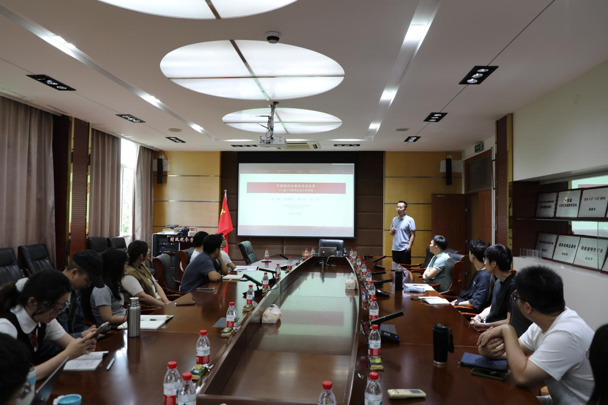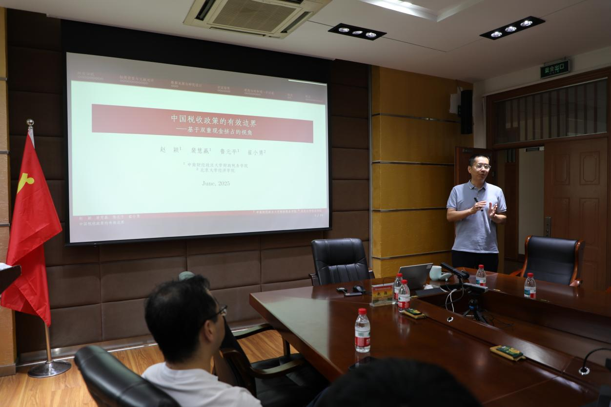 在学院楼307会议室举办财税基础理论与政策双周论坛第4期。本次论坛特邀中南财经政法大学财税学院教授、博士生导师赵颖担任主讲嘉宾,围绕“中国税收政策的有效边界:基于双重现金挤占的视角”这一前沿主题展开学术分享。