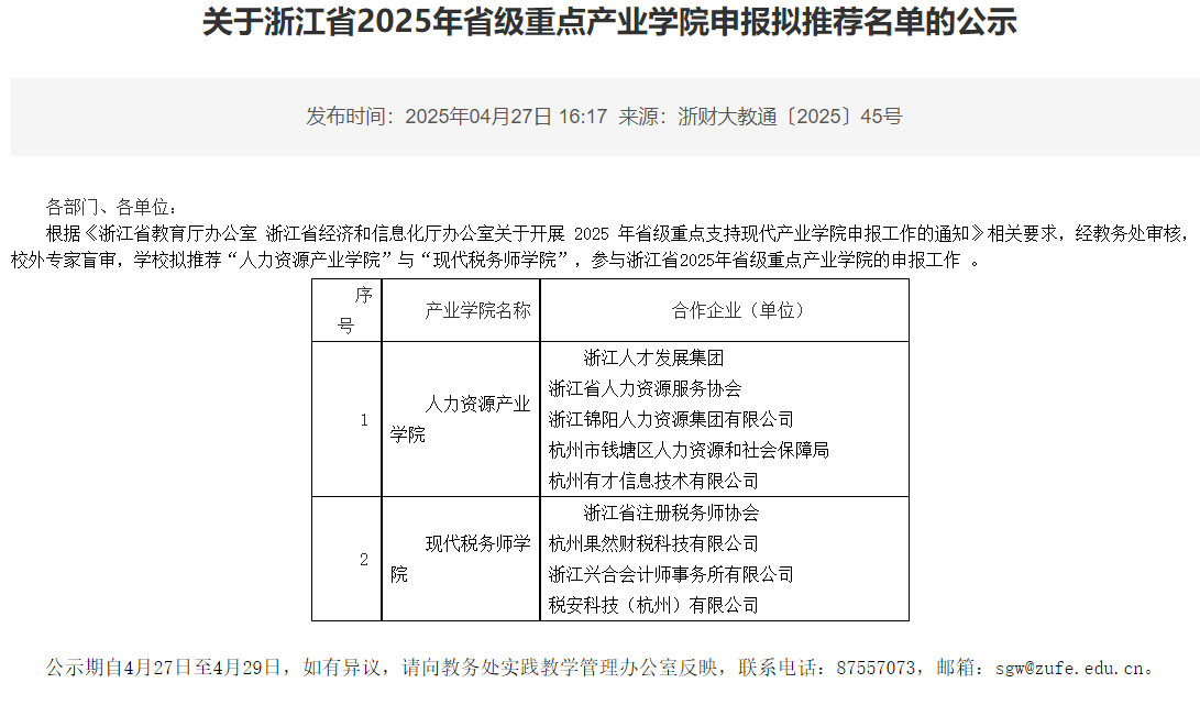 现代税务师学院在校内评审中脱颖而出,被学校拟推荐申报2025年浙江省省级重点产业学院。