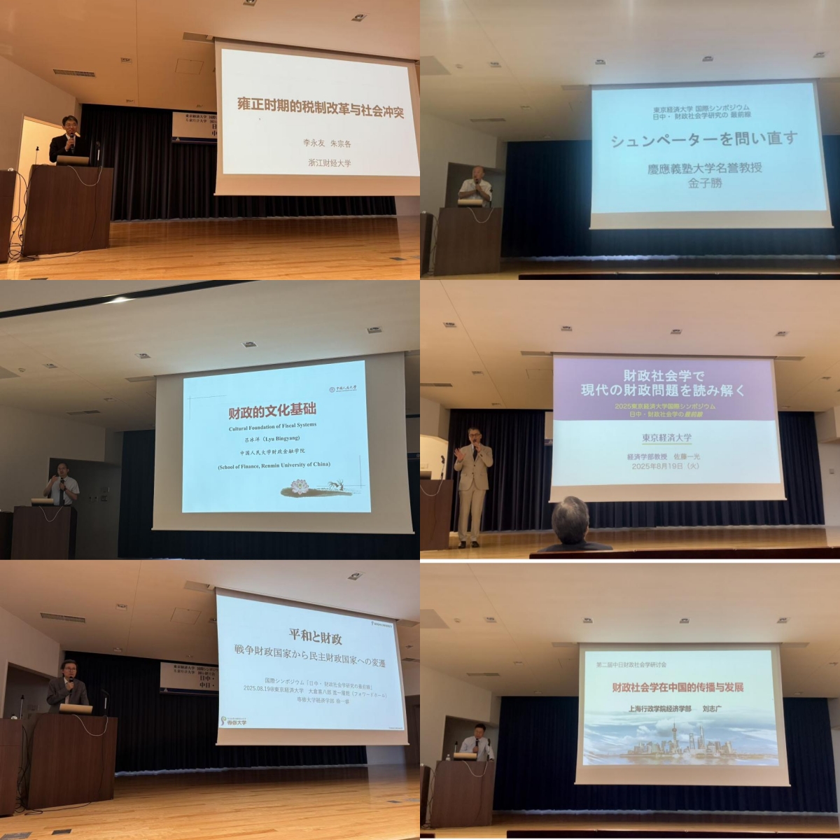 李永友教授、庆应义塾大学名誉教授金子胜、东京经济大学佐藤一光教授、中国人民大学吕冰洋教授、日本专修大学徐一睿教授、上海行政学院刘志广教授等6位中日著名财政社会学者分别做“雍正时期的税制改革与社会冲突”、“重读熊彼特”、“什么是财政社会学:解读现代财政问题”、“财政的文化基础”、“和平与财政——从战争财政国家到民主财政国家的变迁”、“中国财政社会学的新进展”的主题报告。