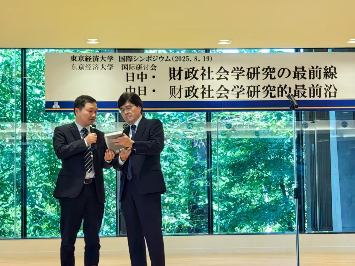 8月19日在东京经济大学举办了主题大会。日本东京经济大学校长冈本英男代表日方向中方学者致欢迎辞,并呼吁进一步加强中日学者的合作交流,致力于运用财政社会学框架解决气候变化、福利负担、国际冲突等重大现实问题。东京经济大学佐藤一光教授介绍了第二届“中日财政社会学研讨会”的筹办过程及中日方双方参会学者。付文林教授代表中方学者向冈本校长赠书《财政与国家治理》,该书由中国人民大学吕冰洋教授主编、商务印书馆出版,汇集了三十余位中国著名财政学者的最新研究成果。
