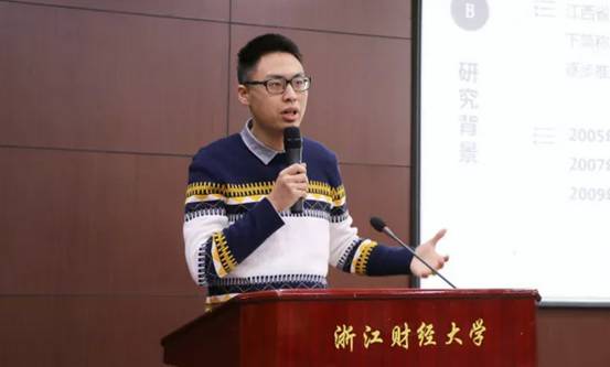 研究生特等奖陈芳敏同学上台进行了展示。她通过细致分析江西省的经验,总结出省直管县改革对地区义务教育投入差距的影响。实证显示,省直管县改革并未逆转江西省地区义务教育投入差距。而加强省级政府对欠发达地区的经济帮扶,完善转移支付的受益者定位,变对转移支付的过程管理为绩效管理,或有望助相应地区走出困局。