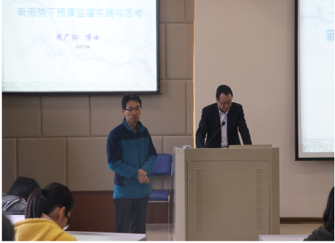 讲座中,周主任首先对同学们简要介绍了我国现行法律法规中包含政府预算的内容,如:《中华人民共和国宪法》、《预算法》等,以及预算审查监督的基本流程。之后,周主任结合自身的工作经验,对比了国内外预算监督程序,就预算监督等问题,提出了自己的观点。